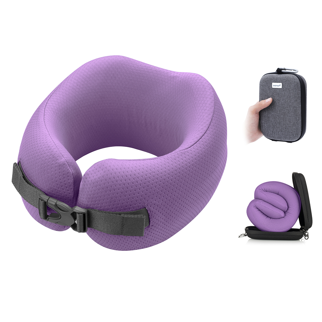 - Wygoda w podróży: Zwijana do 1/4 wielkości z regulowanym zapięciem „rogala”.