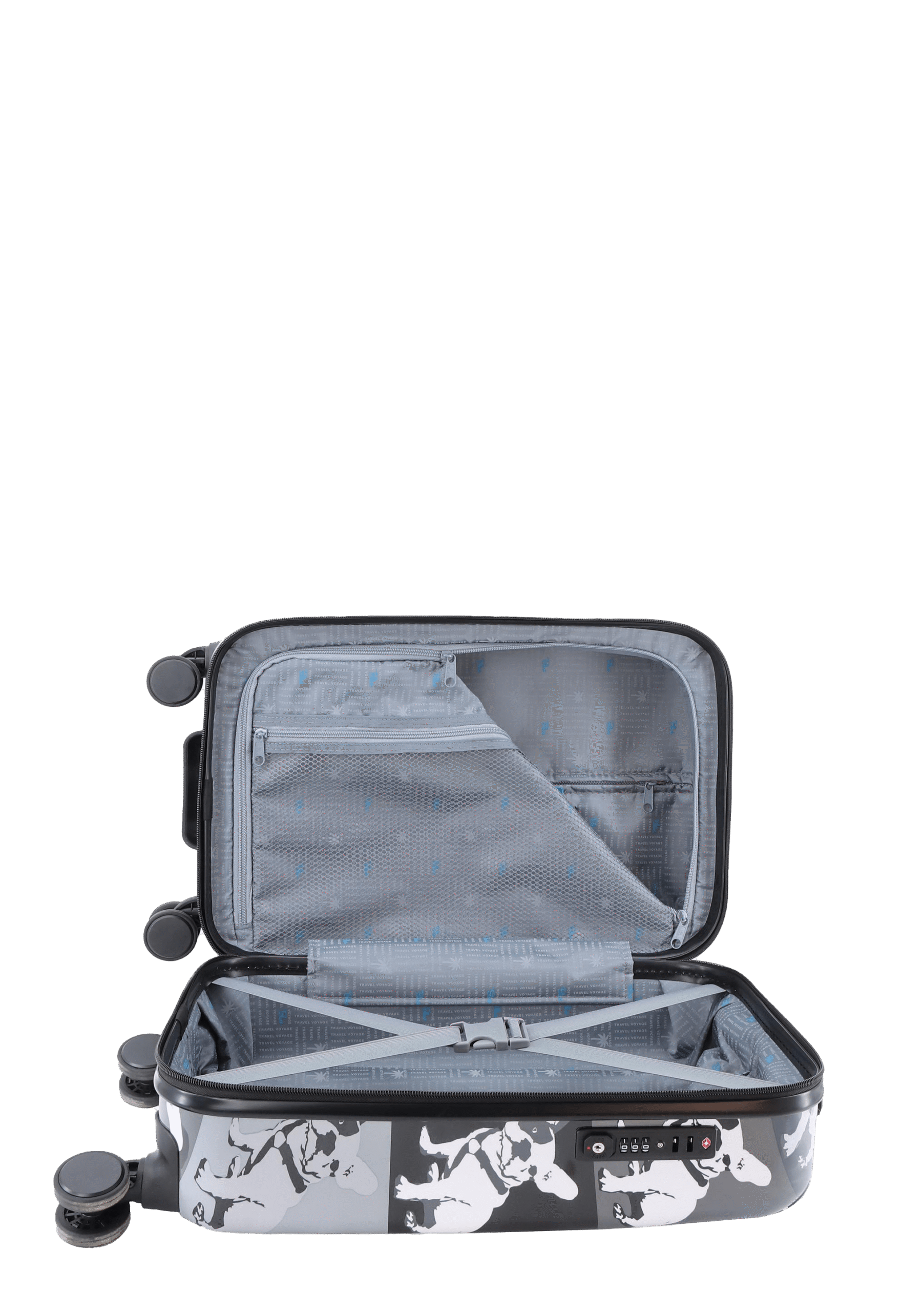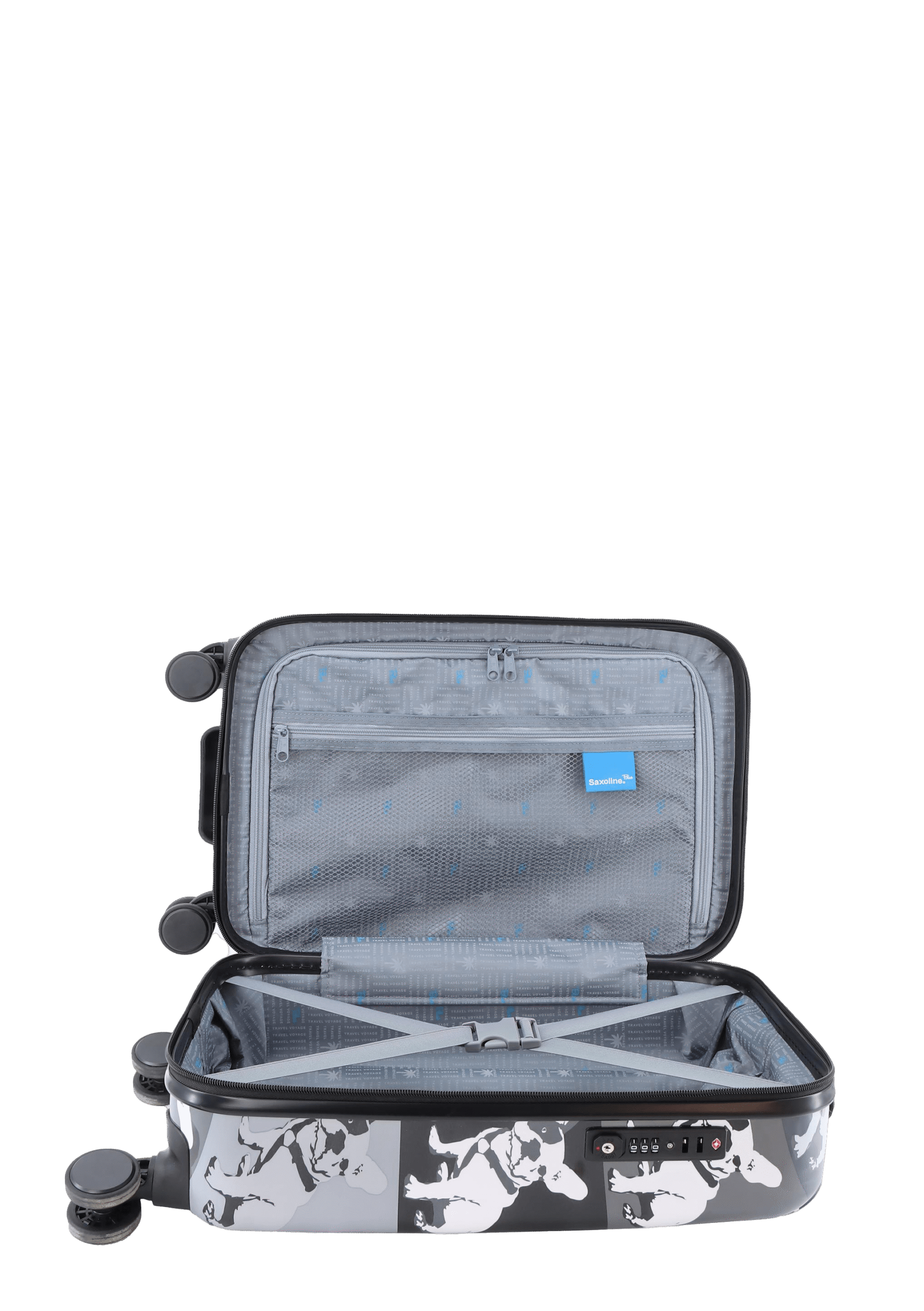 Walizka kabinowa Saxoline Bulldog Mono to więcej niż bagaż – to sposób na wyrażenie siebie. Jej unikalny wzór przyciąga wzrok, a pojemność 37 litrów z poszerzeniem pozwala spakować wszystko, czego potrzebujesz. Lecisz do Lizbony na plaże Cascais czy do Rzymu po smak włoskiej pizzy? Z Bulldog Mono podróżujesz z klasą!
